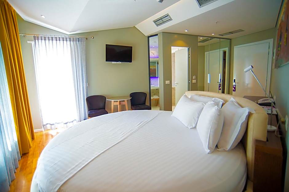 This suite consists of 1 living room, 2 separate bedrooms and 1 bathroom with a walk-in shower and free toiletries. The air-conditioned suite provides a flat-screen TV, soundproof walls, a mini-bar, a wardrobe as well as city views.
