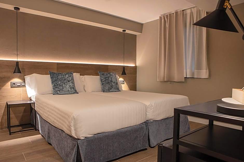 Habitación con vista exterior o vista patio, con dos camas individuales de 35 in x 75 in, perfecta para alojar de 1 a 2 personas, con baño completo. Servicios: Secador de pelo, espejo de aumento, báscula, caja fuerte, teléfono, Smart TV, hervidor de agua, zapatillas, hilo musical, aire acondicionado y calefacción, free wifi, servicio despertador, maletero 24H, tintorería y lavandería de pago, posibilidad de desayuno en la habitación, ameneties de baño, carta de almohadas y baño privado.