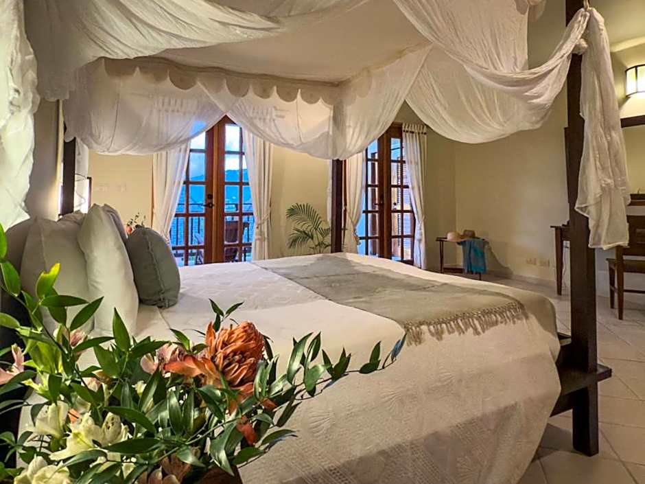 This spacious 2-level suite features a complete kitchen, a separate living area, and 2 private balconies with views of the garden and marina.