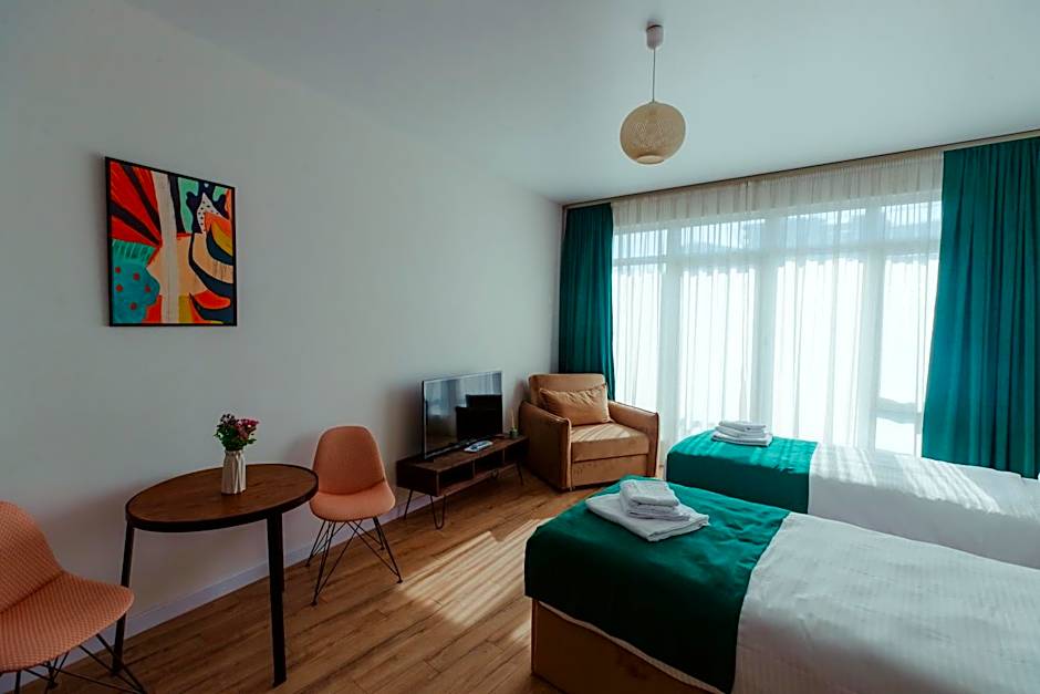 هو فندق شقق مرِح في باتومي، جورجيا، يقدم أجواء ساحلية منعشة مع سهولة الوصول إلى الشاطئ. تُقدَّم وجبة الإفطار لبدء الصباح، وتمتزج الأجواء بين راحة الشقق وخدمات الفندق لإقامة مريحة وغير رسمية.