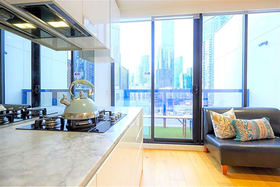 تتوفر مجموعة واسعة من أماكن الإقامة، من خيارات الاستوديو والديلوكس إلى الشقق الأكبر والبنتهاوس. تتميز عدة تصميمات بشرفات أو تراسات تطل على المدينة، مما يوفر مكانًا خاصًا لتناول القهوة الصباحية أو لحظات الغروب الحميمة. يضيف البث عبر Netflix خيارًا ترفيهيًا مريحًا بعد أيام من التجول في شوارع وأسواق ملبورن.