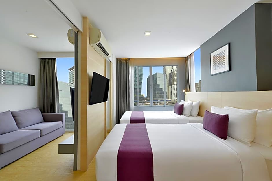 منتجع أنيق مصنف أربع نجوم يقع على طول شارع سوخومفيت في بانكوك، ويوفر قاعدة مريحة للمسافرين. يظل مسبح خارجي بمياه مالحة مفتوحًا على مدار العام، مع تخصيص الدخول للبالغين فقط لسباحة هادئة. يوفر الواي فاي المجاني استمرارًا في خططك الرقمية، ويضيف موقف سيارات خاص داخل الموقع راحة إضافية، ويكتمل ذلك بمركز للياقة البدنية مجاني واستقبال يعمل على مدار 24 ساعة لتقديم المساعدة في أي وقت. في الداخل، تحتوي الغرف لغير المدخنين على تكييف هواء، وعزل صوتي، وسطح للتشمس، وحديقة، وفناء، بالإضافة إلى مرافق مطبخ مزودة بأدوات مطبخ لتلبية نمط حياة مرن.