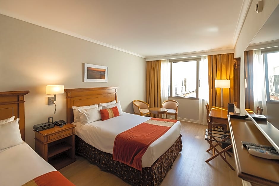 112 ft² room. It has two Queen Size beds, Smart TV with 4k deco, desk, WiFi, individual hot-cold air conditioning, safe with capacity for laptop, hair dryer, electric kettle, mini-bar.