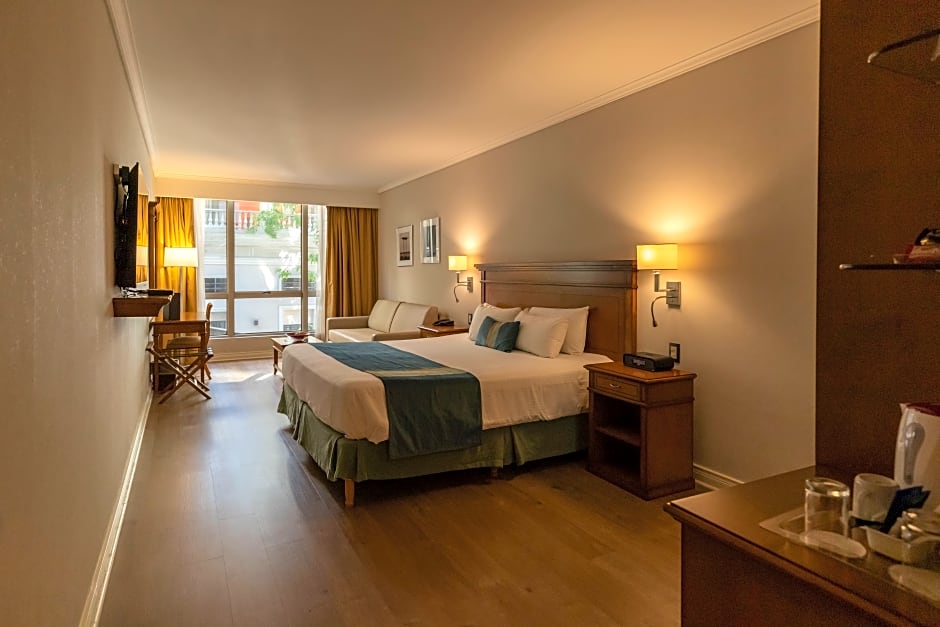 85 ft² room with 20 ft² balcony. It has a King Size bed, Smart TV with 4K deco, desk, shower box, WiFi, individual hot-cold air conditioning, safe with capacity for laptop, hair dryer, electric kettle, mini-bar.