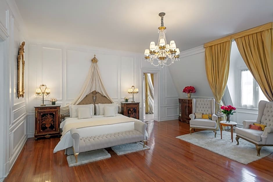 Featuring views of Álzaga Unzué palace, "La Mansión", this king room is furnished with wooden and leather fittings, dressed up in bourdeaux and beige strokes, which bring a touch of brightness to the room. The bedroom includes a king-size bed, a 42" LED TV and a work desk. The full bathroom is fitted with Italian marble, styled in cream and blue hues, a bathtub, a shower, a TV and sliding doors.