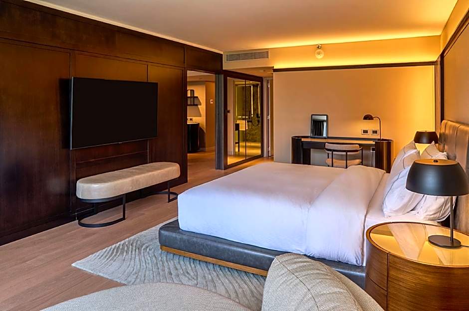 The suite provides a flat-screen TV, a tea and coffee maker, a seating area and a safe deposit box.