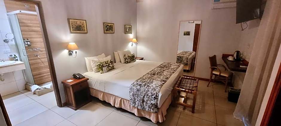 Panambi, the on-site restaurant, serves Argentinian cuisine in a family-friendly, modern setting. A bar rounds out evenings with a casual vibe after a day of exploring Puerto Iguazú. The dining space opens onto garden views, and there’s a terrace and a balcony for outdoor dining.