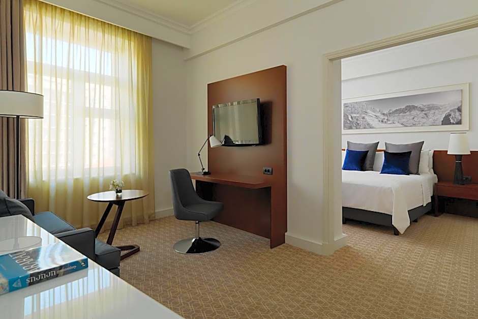 The air-conditioned suite features 1 bedroom and 1 bathroom with a hairdryer and slippers. The suite provides soundproof walls, a mini-bar, a tea and coffee maker, a flat-screen TV with cable channels, as well as city views. The unit offers 2 beds.