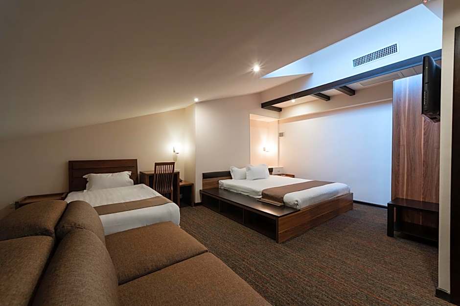 There are 2 kinds of Family Room. One has 2 floors with 2 king size beds and a hot tub in the private bathroom. The other one has 1 king size bed and a sofa bed with 2 private bathrooms. A flat-screen TV, sofa bed, air conditioning and mini-bar are provided.