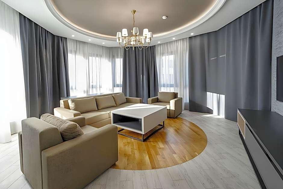 Air-conditioned suite with a mini-bar. This suite features a seating area. This room features views of Severny Avenue. Rooms are equipped with personal safety-boxes, electric kettles with complimentary tea and coffee, bathrobes, slippers, 2 types of pillows, luggage rack, flat-screen TV with cable channels, telephone, wardrobe, sitting area, sofa, armchairs, coffee table, desk, free high-speed Wi-Fi, panoramic city view. Bathrooms offer a full set of free amenities and toiletries, towels.