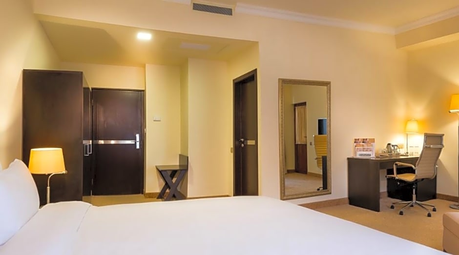 The hotel was amazing. Good location in the city center, walking distance from all the restaurants. Very clean, very comfortable and oversized bed, enough space in the room. The breakfast was rich and delicious accompanied with live piano music! The restaurant on the 12th roof top was so well decorated having dj music at nights and nice cocktails! You can clearly view Mount Ararat from there. The one thing that made me feel awkward during the last night, after turning off the lights, I noticed a big gap under the room's door, my hand could pass through.. i felt that my privacy and the sound isolation were violated. When I asked the reason, the answer was for security reasons, to help guests in case they need help and they are locked in. Anyway, this is the first time I have experienced something like that.