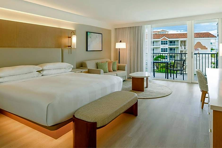 The king room comes with 1 extra large double bed with partial views of the ocean or island. The room features a large private balcony, contemporary bathrooms with dual sinks and Aveda bath amenities and a free bathrobe. The room also benefits from Marriott Revive Beds and bedding, 37" LCD flat screen TVs, mini refrigerator and a coffee-maker. Wired internet for a fee. Please note that you may experience some construction noises during the day.