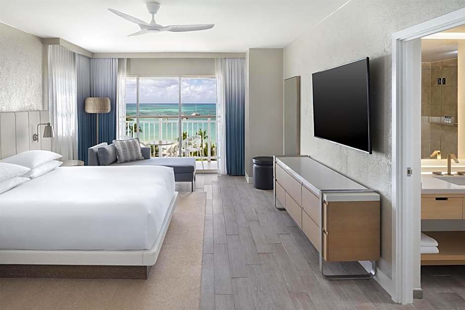 Discover the beauty of Palm Beach from this spacious 600-square-foot room on the 2nd, 3rd, 4th, 6th, or 7th floors. Features include a plush king bed, sitting area with a lounge chair, and a furnished balcony with views of the Caribbean Sea.