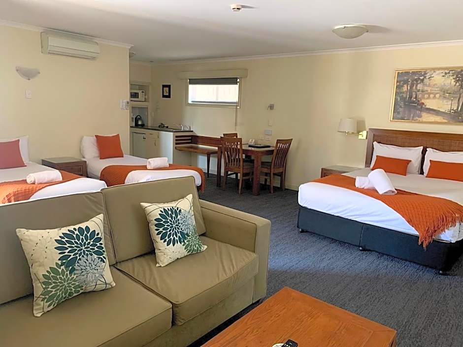 Armidale Pines Motel offers a range of room types including Deluxe Family Rooms, Deluxe Twin Rooms, and Deluxe Queen Rooms. The Deluxe Family Rooms accommodate 4 adults and 1 child, with 2 twin beds and 1 king-size bed. The Deluxe Twin Rooms accommodate 3 adults and 1 child, with 1 twin bed and 1 queen-size bed. The Deluxe Queen Rooms accommodate 2 adults and 1 child, with 1 queen-size bed. All rooms are non-smoking.