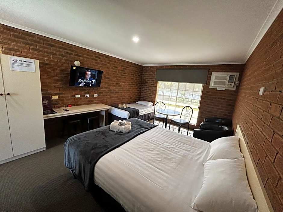 A cheap and cheerful place to stay. Bed was very comfortable and there was plenty of room. There was tea and coffee facilities and complimentary water. I would recommend staying here. The mighty Murrumbidgee river was a short stroll away if you would like an evening or morning walk. We had a delicious dinner at the RSL.