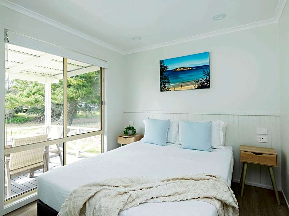 Property and location was beautiful. Well maintained, cabin was complete with everything we needed. Beach was immaculate and there was a water area at park with the ducks and frogs. Swimming pool was incredible. Play park for kids was big and gated. Very secure place, cameras in common areas including the pool area. Locks and gates were appropriate (and good quality) for families with kids any age, very impressed. We totally recommend this holiday park, we had a fantastic, relaxing, fun stay! The best part, you're so close to the Ocean you can hear the waves as you go to sleep.
