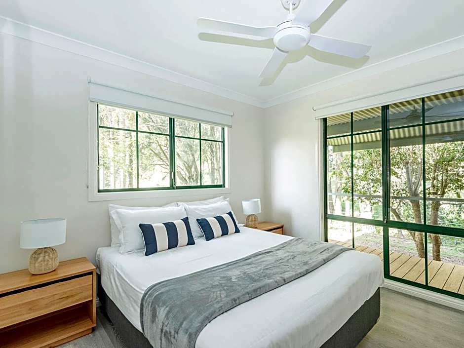 Great discounted rate via booking.com. Just came across it on our drive up the coast planned to stay one night, but added another after first night. Pretty empty cos all kids gone back to school so it was super relaxed, beautiful trees and garden, love proximity of peaceful private beach, and other nearby surf beaches. Super chilled with fab weather on the porch, very clean and comfortable villa two two one. Excellent shower water pressure with lots hot water. Staff were so welcoming and helpful especially Ian who gave us a jump start when our car battery failed. We will definitely be back! And having the Thai food truck on the premises with delicious authentic food was for this Singaporean icing on the top!