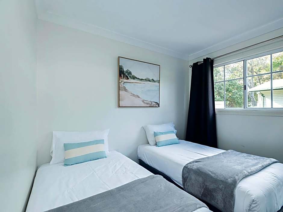 Absolutely beautiful park, in a stunning location. Brett at reception was friendly, helpful and knowledgeable! It was so lovely and quiet whilst we were there. The cabin was comfortable and clean. The beach right behind our cabin was incredible. Calm, clear water and just perfect. We used the BBQ facilities, which were extremely clean and use friendly. Kids absolutely loved the huge, clean pool and the friendly possums who came to visit for some fruit each night. We absolutely cannot wait to come back.