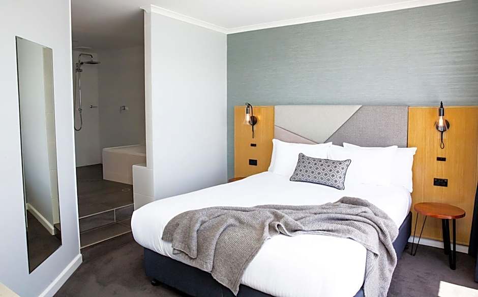 This suite features a queen bed in the bedroom, a separate lounge room, walk in shower, bathtub and wrap around balcony overlooking the water.