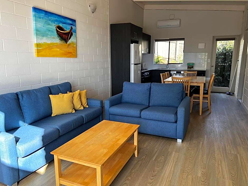 What a fabulous location about 1km out of town- easy walk to Fisherman’s wharf and all the local beautiful attractions. The apartment was lovely. Very comfy lounge and bed. Fully equipped kitchen and bathroom was also very tastefully done. Lovely shower Anna - reception was just so friendly and welcoming. Dave the manager was also welcoming and gave me a good tip about a beach to explore Danni the owner was also so welcoming and congratulations on a great little resort business! Fabulous and would highly recommend.. Thank you ⭐️⭐️⭐️⭐️⭐️