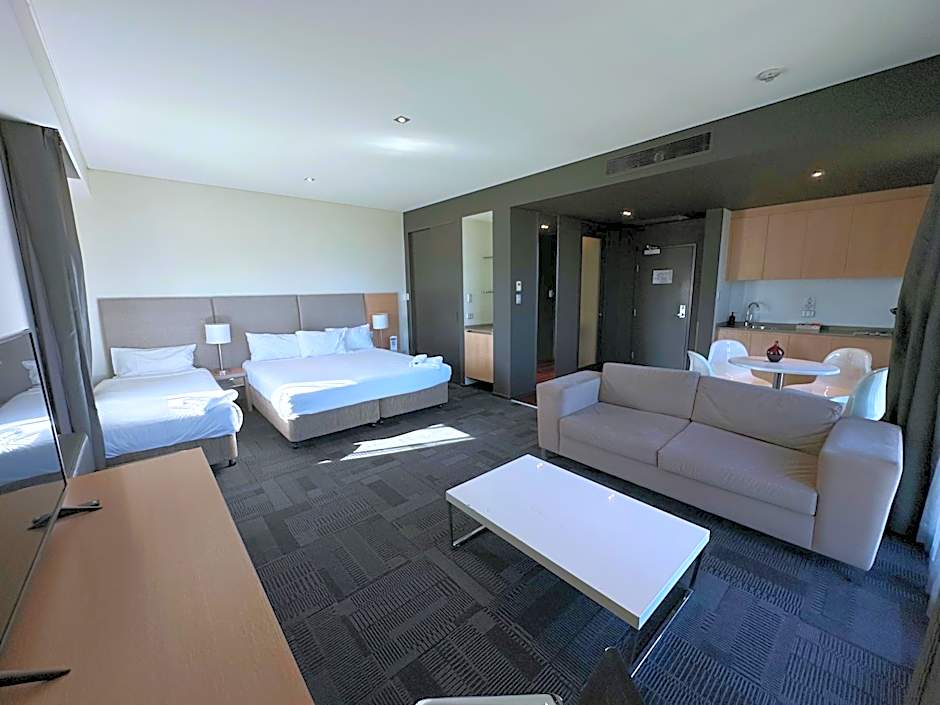 These spacious 40 sqm Suites offer views over the Blue Mountains or Sydney Motorsport Park. When you stay in an Executive Suite you’ll also enjoy access to the Business Lounge located on the same level to relax or work with panoramic views and all-day refreshments.