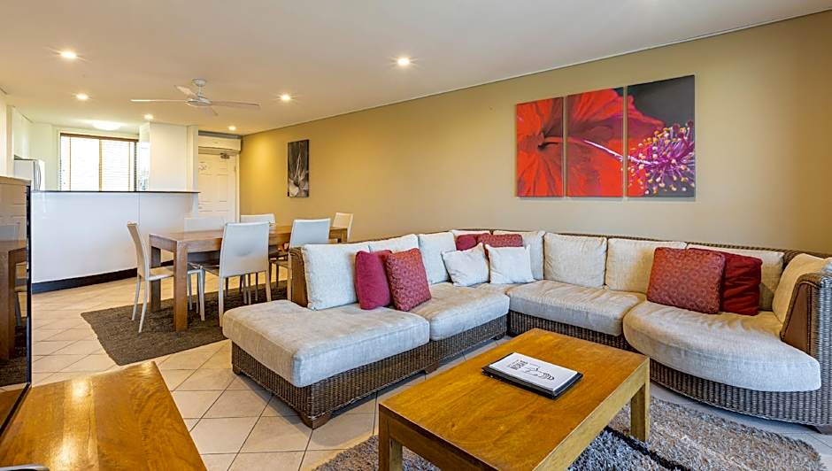 This spacious, first floor apartment features a furnished balcony with fantastic views of Byron's Main Beach. The master bedroom has an private bathroom and a TV. The main bathroom has a shower over the bath, a separate toilet and laundry facilities. There is an open lounge/dining area and a fully equipped kitchen with a dishwasher, microwave, oven, stove top and a refrigerator. The second lounge area has a plasma TV with satellite channels and a DVD player. This apartment is air-conditioned. Please note that the price is based on 6 guests. Maximum occupancy is 8 (see Hotel Policies).