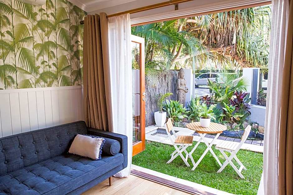 Opening out to a lush, tropical garden, these fully renovated, retreat-style boutique rooms feature high quality fittings, modern décor, high ceilings, original antique polished teak floorboards, air conditioning, ceiling fan, large mirrors and hanging space. It also offers tea and coffee facilities with bar fridge and sink, a light, airy private bathroom and sliding window shutters for privacy. For your comfort and entertainment, this suite enjoys a private in-room lounge area and 32-inch flat-screen TV. Guests have direct access via double fronted doors to the communal tropical garden area with an outdoor shower, tranquil lily pond, seating and barbecue facilities. Free WiFi access is provided. Please note that the price is based on 2 adult guests only. There is no capacity for additional guests. Onsite parking is not included for this room but free street parking is available at a location nearby.