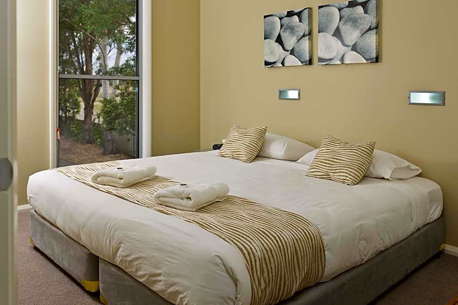 This villa features 3 bedrooms. The master bedroom has an private bathroom and a king-sized bed, while the 2nd and 3rd bedrooms, each have 2 king-single beds. There is a fully equipped kitchen, a dining area and a lounge with a TV. There is reverse-cycle air-conditioning in the bedrooms. Other features include ceiling fans, a laundry and an outdoor entertaining area with BBQ facilities, outdoor furniture, sun lounges and private access to the pool.