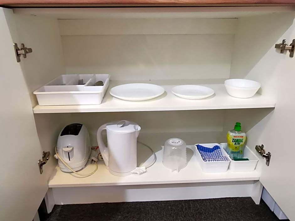 Located upstairs on the first floor, this room offers TV, a toaster, refrigerator and tea and coffee maker. A microwave is available upon request.