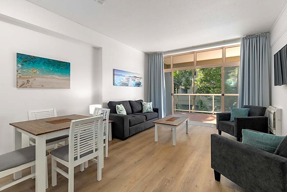 1-bedroom resort apartments offer a large separate living area, fully equipped kitchen, laundry, spa bath and shower. The decor is more modern than the one bedroom economy apartments. The majority of Resort Apartments are accessible via a elevator, however some are accessible via stairs only.