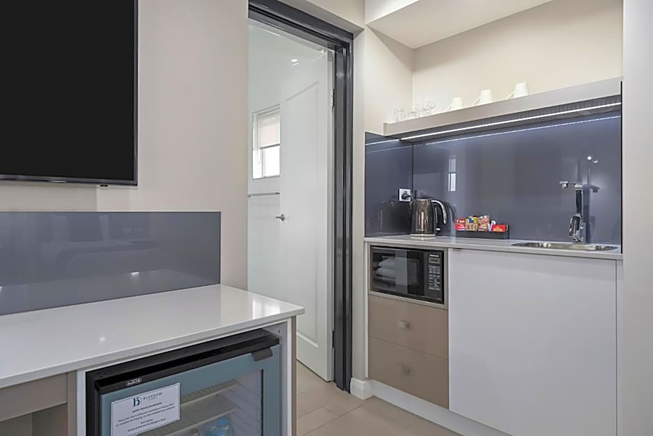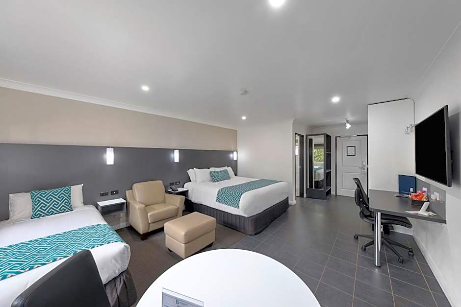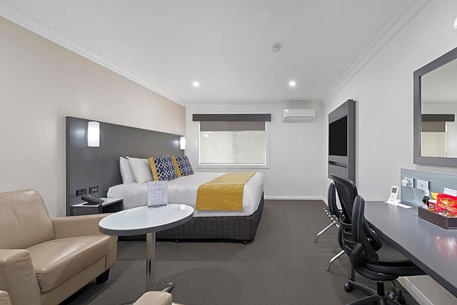 Experience our newly renovated 4.5-star room, featuring a luxurious King-size pillow-top bed (a true King bed, not two singles combined) and leather armchairs. Enjoy top-notch entertainment with a 55" flat-screen TV, surround sound, and complimentary access to Netflix, Stan, and Foxtel.