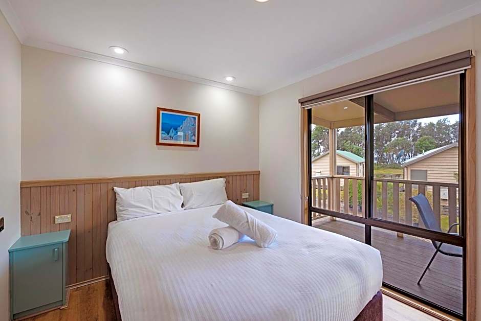 The self-contained deluxe two bedroom cabin was well appointed, however we felt it was overdue for some essential maintenance, with relatively basic things like fly-screens, blinds, dishwasher and shower door needing attention. The onsite facilities were great for the kids, though the pools and spa needed a clean as there were small stones and sand in both. We were disappointed with dining options in Eden which were quite expensive, closed in the early evening and limited menu for a gluten free family member. Recommend planning a visit to the local Coles for supplies and taking advantage of the free BBQs in the park and cabin cooking facilities. None of these negatives were deal breakers. We had a great family holiday and look forward to returning again.