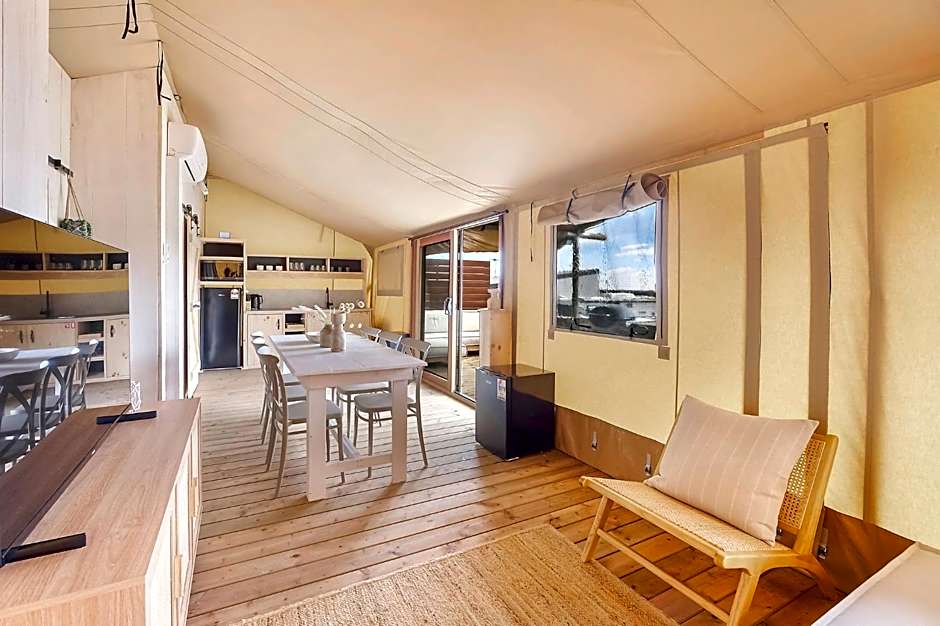 Lovely spacious cabin with stunning sea view and sizeable terrace outside. The communal areas including BBQ spaces are beautifully maintained and the location of the park is perfect , 10 minutes walk from the main seal rocks village. Staff friendly.