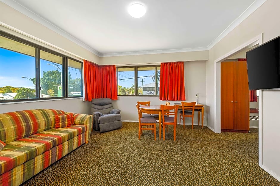 It was clean and great for an overnight rest while on our road trip from Gympie to Sydney. The price was quite reasonable. There were a few little extras that you don’t usually find at these smaller inns. There were 4 chilled glasses in the fridge (2 wine & 2 standard) along with 2 complimentary cold bottles of water, and milk for the coffee. They have actual coffee mugs and a good jug. There were also a few free bikkies and plenty of Moccona coffee and Bundaberg sugar. Hair dryer, blankets, and extra pillows in the wardrobe. The room was spacious enough for me, my husband, and 12 yr old son. The TV has Netflix already on it (family friendly shows) and your other standard channels. The beds weren’t amazing but comfortable enough. The air conditioning worked great. The bathroom had a standard shower with shampoo, conditioner, & soap dispensers and the sink area has hand soap, lotion, and shaving cream dispensers. The towels were surprisingly really, really good! They weren’t big, thick plush towels but they just sucked the water right off of you. There was just enough parking. The staff was very friendly, nice lobby, and snacks/drinks available for purchase. There is a continental breakfast available for $15/person which we passed on. it. There are plenty of places to eat around the corner. A swimming pool is available but unfortunately we did not have time to use it. We had planned on stopping at Coffs Harbour for the night for our trip but had to pull off early because we were too tired. So glad we did!! We’ll definitely make this hotel our stop-over now for our future road trips.