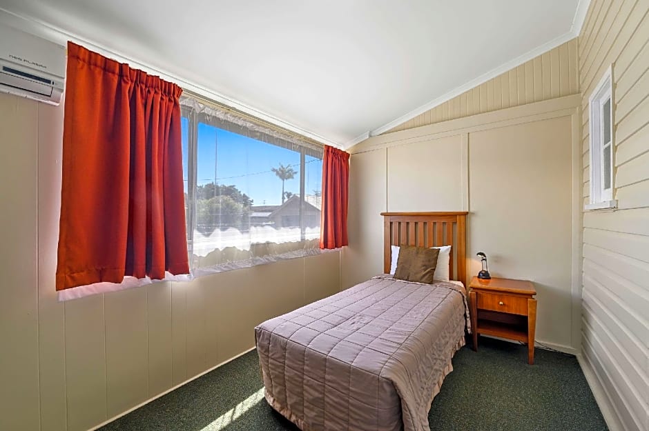 The Quality Inn Grafton offers a variety of room types including Standard Double or Twin Rooms, Cottages, Deluxe Queen Rooms with Courtyard, Deluxe Family Rooms with Balcony, and Deluxe Queen Rooms with Balcony. All rooms are non-smoking and have different occupancy capacities ranging from 2 adults and 1 child to 4 adults and 3 children. The bed sizes available include Twin beds, Queen size beds, and Sofa beds.