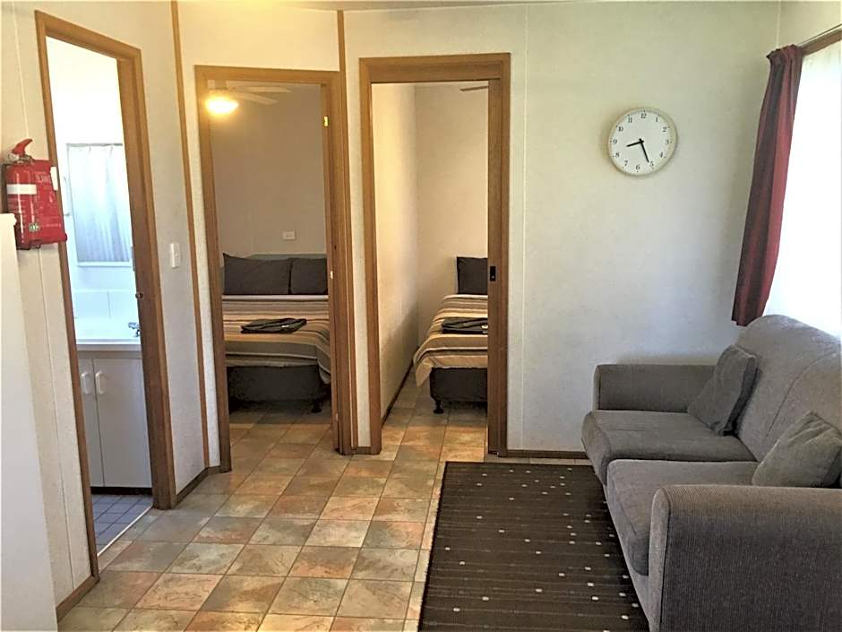 Really great little caravan park. We went as a family for a wedding, so booked 2 studios and had 2 campervans plus a puppy. Hosts Roger and Donna were accommodating, helpful and friendly. Studios were spotless and everything there that one needed. The camp kitchen, laundry and toilets/showers were also clean and lacking nothing. Will def stay there again.