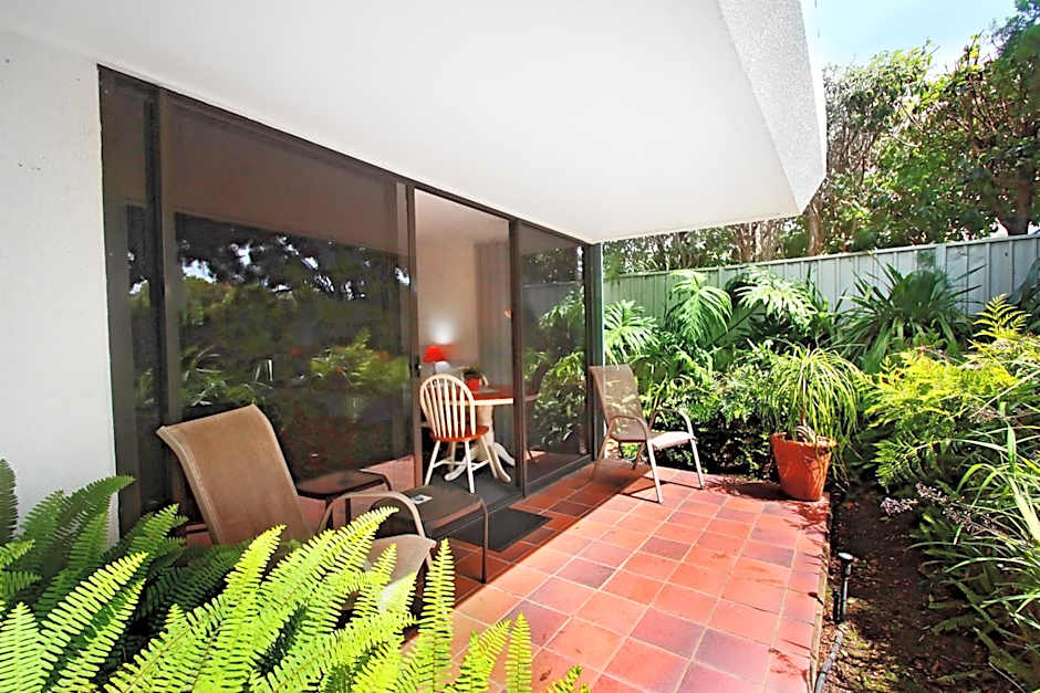 This twin room has 2-king single beds, renovated bathroom, a 32 inch TV with DVD player, dining table and chairs, small bar fridge, desk with lighting and tea/coffee making facilities. Ground floor rooms have a private patio and 1st floor rooms have a private balcony that include outdoor furniture and overlook the garden. This room is located on the roadside of the property. This unit is available for adults only.