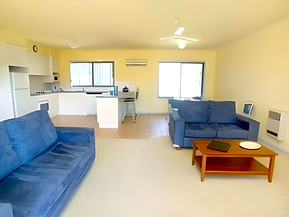 Location was good except it's under the flight path for planes landing at Merimbula. However, this only happened about twice a day so not really a problem. Unit was very spacious. Very well equipped. Manager was very friendly and helpful. He met us with umbrellas as we arrived and showed us to the unit. He even sent a text on our way to say we could check in early if we wanted to.