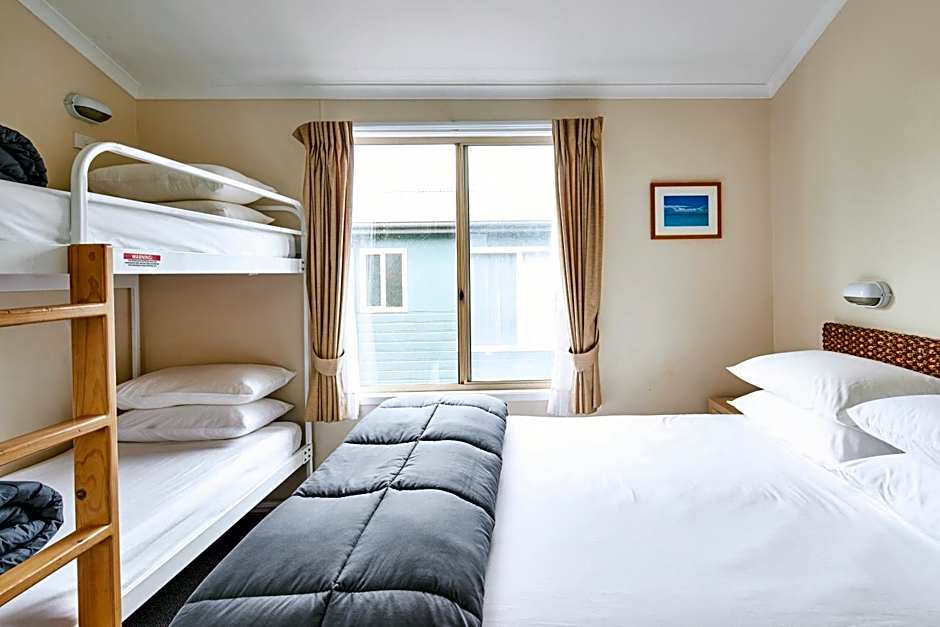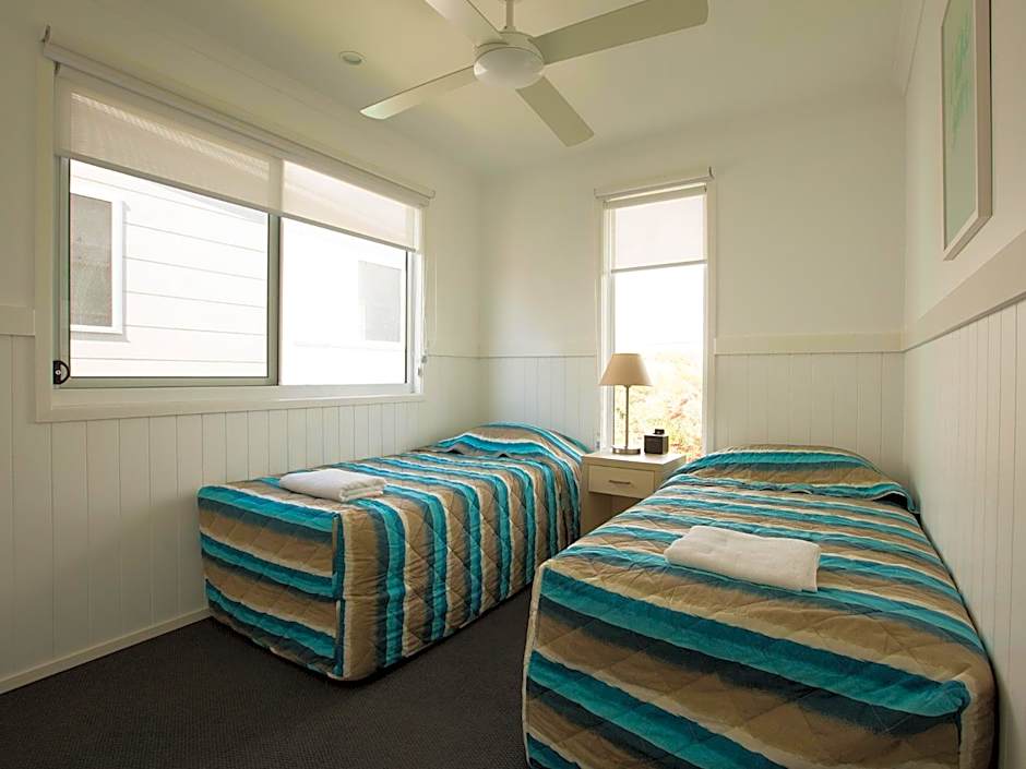Located a short walk across the parkland to Short Point Beach, this Bungalow features air-conditioning, a kitchen with fridge, microwave, oven and stovetop and a bathroom. The veranda has outdoor dining and portable electric grill. Also featured is a dining and lounge area with TV, DVD player and cable channels. There is a car space next to the bungalow.