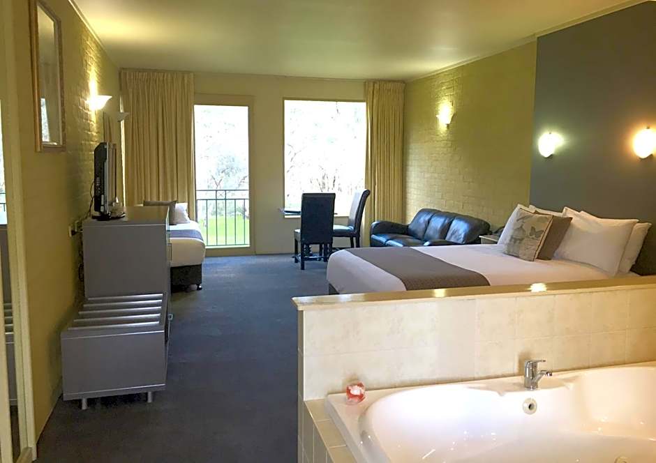 This spacious, adult only room overlooks a bush land reserve and features a 2-person spa bath. Offering ground floor access, this air-conditioned room features a 40-inch flat-screen TV, leather sofa, marble table and separate private bathroom with a shower, and has new carpet installed as of January 2017.