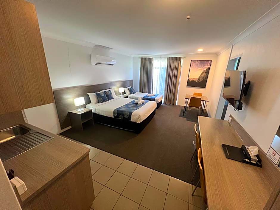 Larger groups will find several roomy layouts to choose from. A 474 sqft Family room comes with two Twin beds and a Double, and a 269 sqft Family Suite features four Twin beds plus a Double. For added space and a little extra luxury, there’s a Deluxe Suite at 377 sqft with a Twin and a Double, and a 431 sqft Deluxe, Queen arrangement that accommodates up to four adults and three children. A Standard Room (215 sqft) offers a Twin and a Double, while a Suite with Kitchenette provides an expansive option for bigger parties.