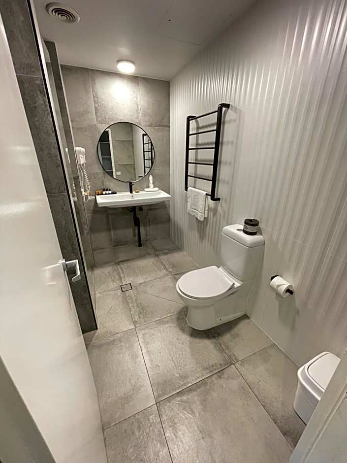 We were in a very modern 2b/r apartment on the top floor (7th). Bathrooms and living areas were very clean. Nice big balcony. Comfy beds. Basic amenities in the apartment (cutlery etc) but we didn’t mind too much as we ate out quite a bit and didn’t cook at all. The apartment is in a great location opposite the foreshore. Lots of restaurants and cafes around, all within walking distance. Its a 15min walk to Woolies/Coles/Big W. The gym and pool are both very clean and well kept.