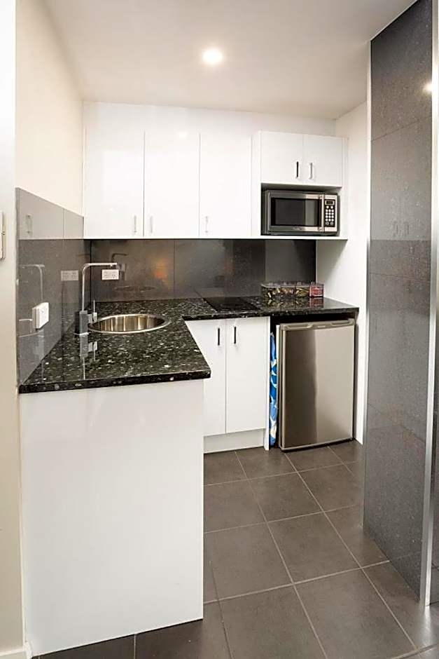 This studio has a electric kettle, microwave and air conditioning. This room has no capacity for extra beds. Please note beds cannot be split.