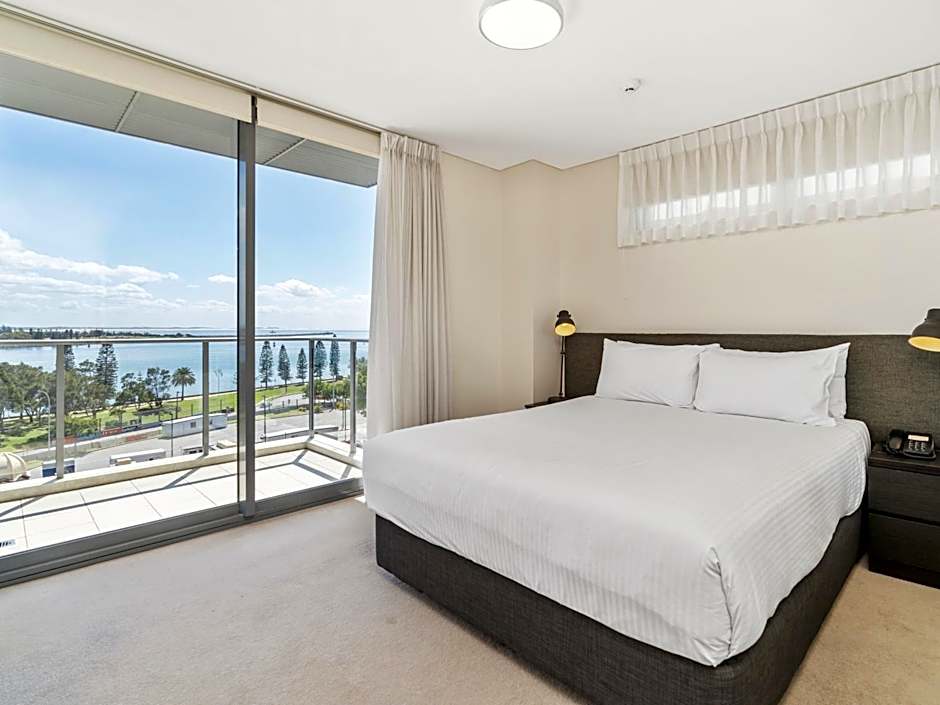 The Terminus Apartment Hotel Newcastle offers a variety of apartment-style rooms. These rooms can accommodate between 2-4 adults and 1 child and feature bed sizes ranging from twin beds to queen or king size beds. None of the rooms allow smoking. Room sizes range from 463 sqft to 969 sqft, with some rooms offering balcony and harbor views.