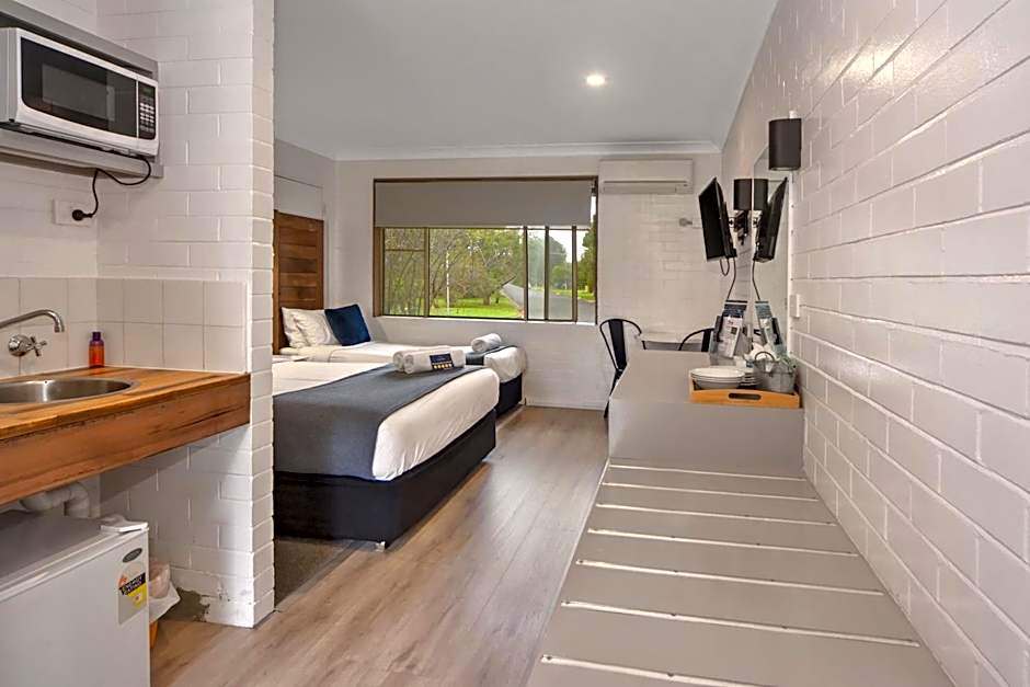It was everything we needed and nothing we didn't. We loved that they had thought of and catered to everything we might need during our stay. It was more modern than most motels. Heaters and TVs in each of the rooms and a good flow on the shower. Our favourite was the cafe downstairs, which served great coffee and food. The staff were wonderful. Short walking distance to walk along the river which was lovely. There's also an onsite indoor pool and laundry facilities.