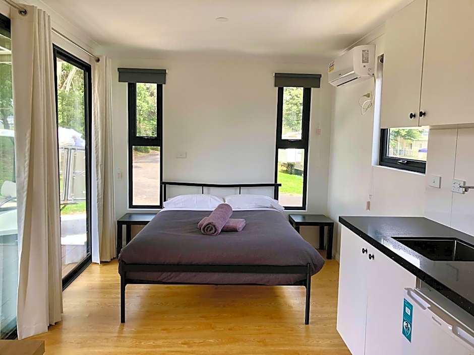 Our two bedroom cabin was immaculately tidy and well appointed. The beds were super comfy and made up with electric blankets if needed. The location of the leafy holiday park is excellent - only a short stroll into town to access cafés and supermarkets.