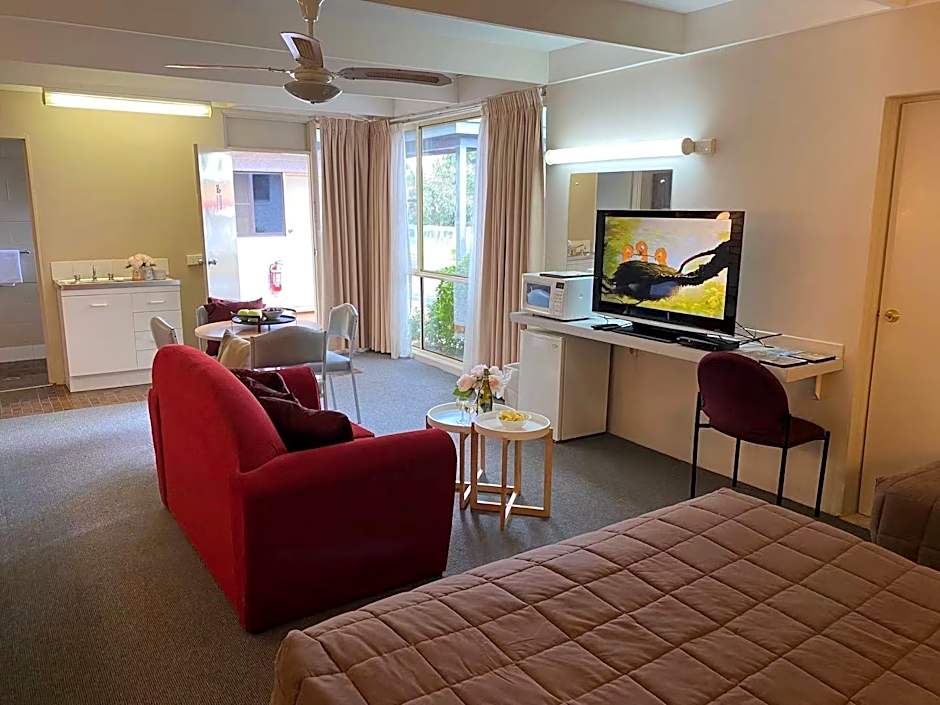 This ground floor room has a lounge and a split system air-conditioner. A microwave, refrigerator, kettle and toaster are also included. Parking is just outside your room door.
