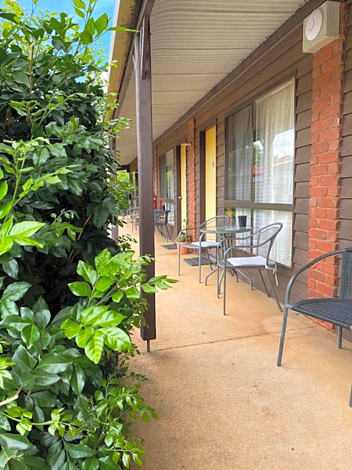 Rainy the night we arrived. Many V Dub trucks passing by, some noise from Newell Hwy apparent late at night even in the rear rooms. The barrel on the entry door lock was spinning, difficult to open the door. Staff notified on the 2nd last morning of our stay. No latch chain inside room a real privacy concern. Electric blanket worked on one side of the large double bed.. Bedding a little on the soft side but comfortable. Very low water pressure to hand basin. Hard to regulate the heat when showering. Small shower cubicle in spacious bathroom. Lots of hanging hooks. Shampoo and soap in dispensers.