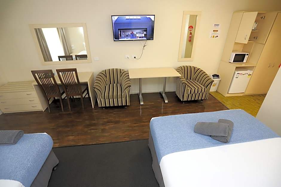 This refurbished room offers a refrigerator, a microwave and tea/coffee making facilities. The private bathroom has a shower and a hairdryer. The room also has back door access to the garden area, allowing fresh air through the security screen door. Trailer parking is very close to these rooms.