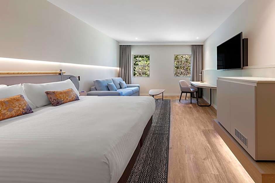 The Crowne Plaza Hawkesbury Valley offers a variety of room types. These include Junior Suites with balconies, Premium Rooms, Deluxe Queen Rooms with Two Queen Beds, Standard Queen Rooms, Standard Rooms with double and twin beds, One-Bedroom Suites, and One-Bedroom King Suites with balconies. The rooms vary in size from 248 sqft to 624 sqft. Smoking is not allowed in any of the rooms. The rooms can accommodate varying numbers of adults and children, with the largest occupancy being 4 adults and 3 children. The bed sizes range from king size beds to queen size beds, and some rooms also have sofa beds.